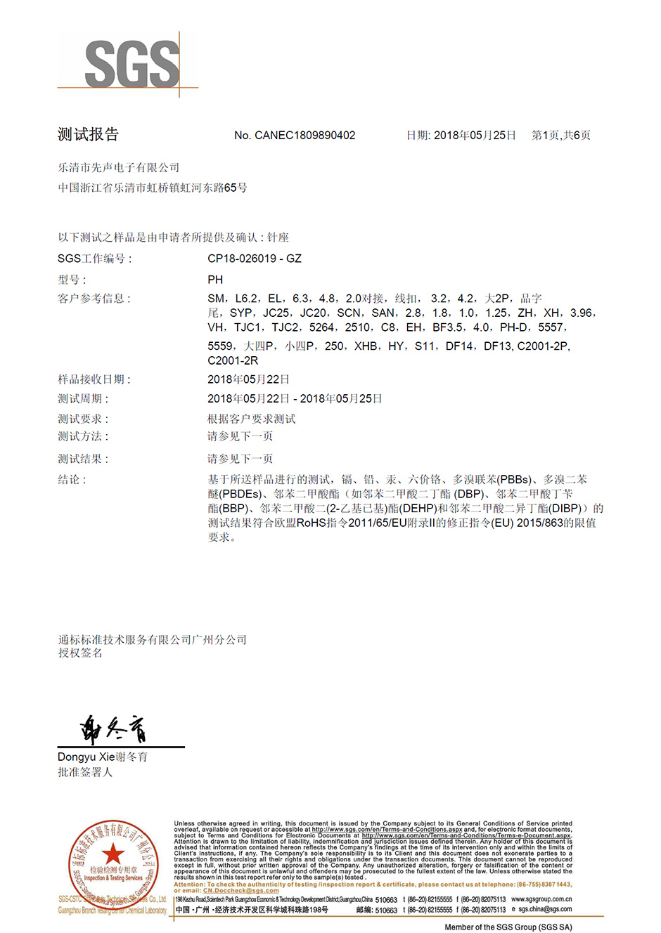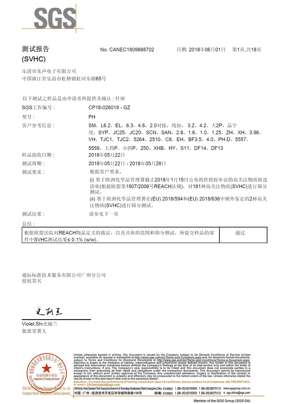 SGS環(huán)保認證報告